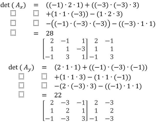 Let us determine the integral with Sarrus’ rule. For the determinant above we have