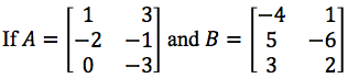 Since a 2x3 matrix has 3 columns we can multiply it by a matrix which has 3 rows, so one example of this type of matrices is 3x4.