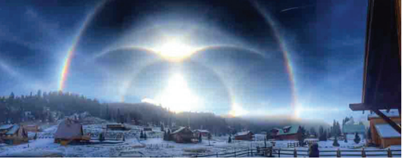 Haleler atmosferde bulunan buz sisi ve buz kristallerinden ışığın yansıması ve kırılması neticesinde ortaya çıkan ışık saçan sütunlar, kavisler ve daireler şeklinde görünmektedir. Güneş ışıklarının kırılması ile meydana gelen hale farklı renklerde olabilirken Ay ışığından meydana gelen hale olayının hepsi beyazdır. Doğru cevap A’dır.