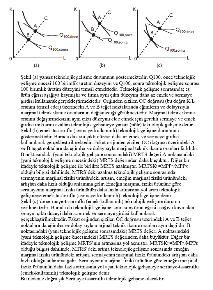 Doğrusal üretim fonksiyonu sonsuz ikame esnekliğine, sabit-oranlı üretim fonksiyonu sıfır ikame esnekliğine ve Cobb-Douglas üretim fonksiyonu ise 1 ikame esnekliğine sahiptir. Bundan dolayı doğru cevap D’dir.