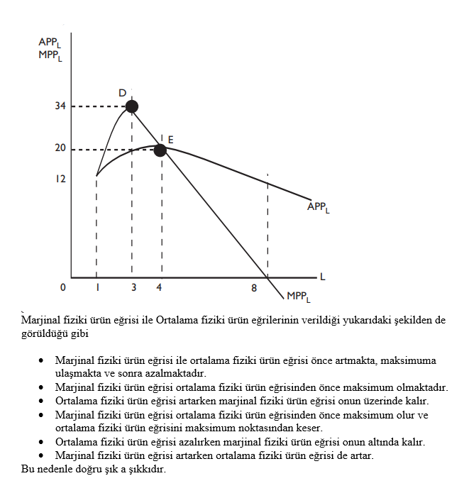 Ortalama fiziki ürün eğrisi marjinal fiziki ürün eğrisinden önce maksimum olur. |