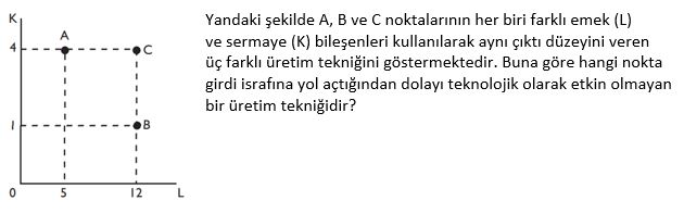 C noktası, A veya B’ye göre girdi israfına yol açtığından dolayı teknolojik olarak etkin olmayan bir üretim tekniğidir.