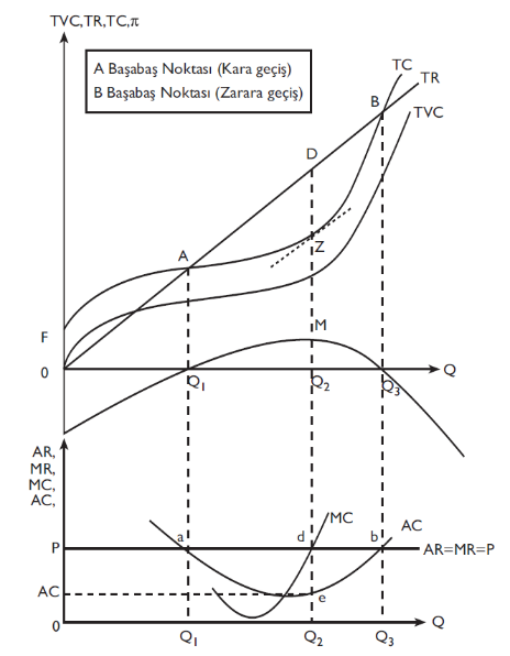 P=AC durumunda, firma için başabaş noktasıdır. Bu noktada ne kar ne de zarar vardır.