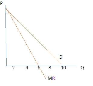 Yukarıda bir monopol için talep (D) ve marjinal hasıla (MR) grafiği verilmiştir. Buna göre aşağıdaki ifadelerden hangisi yanlıştır?
