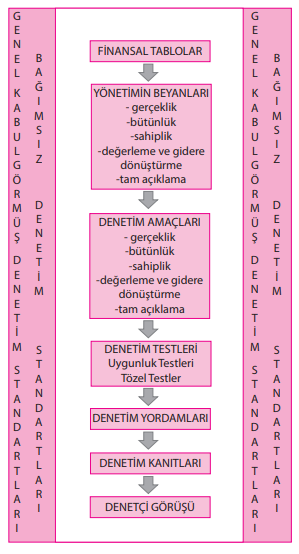 Denetim kanıtları - Denetim yordamları - Denetim testleri - Denetçi görüşü |