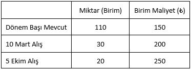 K malına ilişkin dönem içi bilgiler yukarıdaki gibidir. Dönem sonu mevcut 40 birim olduğuna göre FİFO yöntemi kullanılırsa satılan malın maliyeti (S.M.M) kaç ₺ olur?