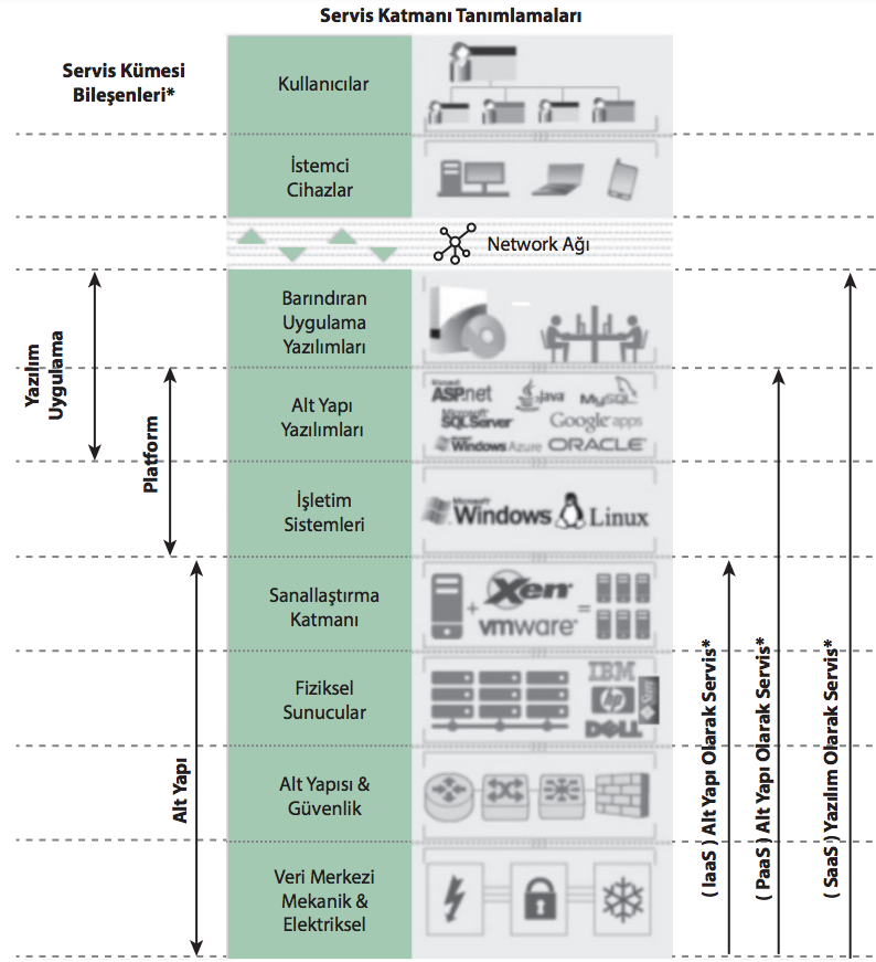 Bilişim teknolojileri arasında ortak bilgi ve teknoloji paylaşımını sağlayan hizmetlere verilen genel ad olup, bilgi teknolojilerindeki günümüzde bütün büyük BT işletmelerinde kullanılmaya başlanan sanallaştırma (Virtualization) sistemine dayanan bilgiyi ve teknolojiyi altyapı hizmeti olarak sunma ilkesi aşağıdakilerden hangisidir?