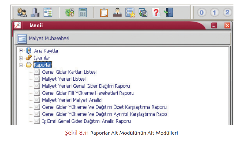 Maliyet Muhasebesi modülünün işlemler alt modülü altında yer alan alt modüller aracılığı ile toplu olarak yapılan işlemler gerçekleştirilir. İşlemler alt modülü; maliyet yeri genel gider güncelleme, fiilî genel gider yükleme işlemi, fiilî genel gider yükleme geri alma gibi alt modüllerden oluşmaktadır. Dolayısıyla bu işlemlere ait raporlar da Maliyet Muhasebesi modülüne ait olacaktır.