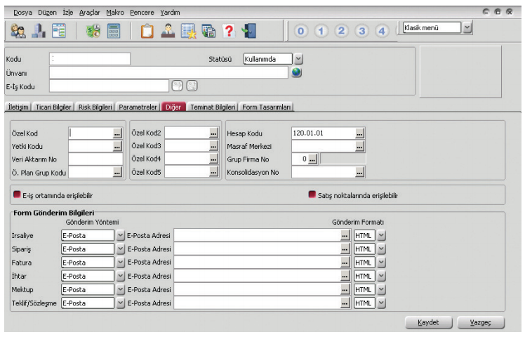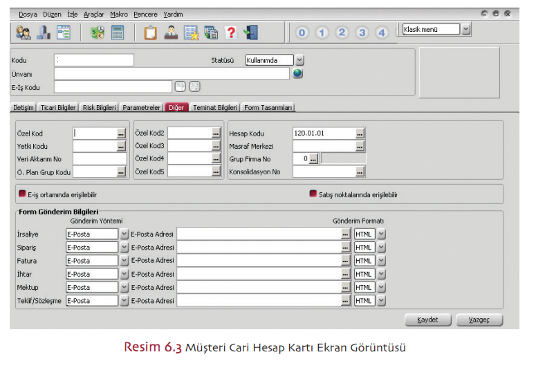 ERP yeni müşteri kaydı ekran görüntüsü |