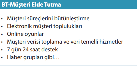 Aşağıdakilerden hangisi İlişkisel Pazarlama Temel Alanlarında Bilgi Teknolojilerinin (BT) Potansiyeline göre BT- Müşteri Elde Tutma basamağının altında yer almaktadır?