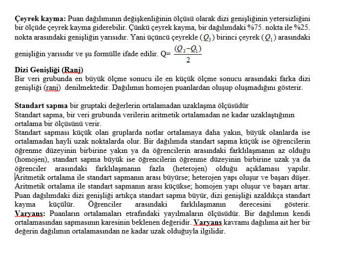 Aşağıdakilerden hangisi ölçümlerin homojenliğini ve ortalamaya göre ne kadar yayıldığını gösteren değerlerden biri değildir?