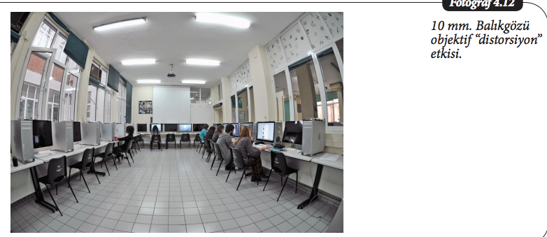 Bozulmalar mesafeyle bağlantılı olarak, nesnelerin gerçekte olduğundan daha iri ve yamuk bir formda görünmesine neden olabileceği gibi, görüntüde var olan çizgileri de eğilmiş, bükülmüş biçime dönüştürebilir. Bu bozulmanın en bariz örneği, “balıkgözü” olarak tanımlanan objektiflerin yarattığı dairesel görüntüdür. Çok geniş açılı objektiflerin bir bölümü bu form bozukluğunu yaratırken, bir bölümü ise, düzeltilmiş optik sistemi sayesinde, bozulmayı engelleyebilmektedir. Bu objektifler “distorsiyonlu” ve “distorsiyonsuz” olarak da tanımlanabilirler (Fotoğraf: 4.12 ve 4.13).