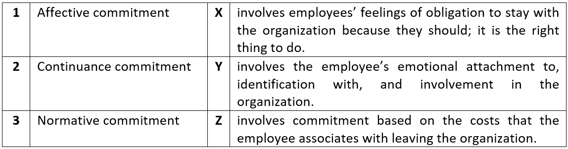 Affective commitment involves the employee’s emotional attachment to, identification with, and involvement in the organization.