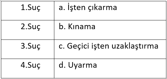 Genelde işletmelerin uyguladıkları ceza türlerinin eşleştirmesi hangisinde doğru verilmiştir?