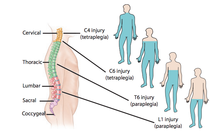 Yukarıda verilen resimde hangi sayı "C6 injury (tetraplegia)"yı göstermektedir?