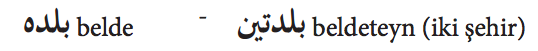 Osmanlı Türkçesinde sonu kapalı te ile bitip ha-i resmiye (? = -a, -e) şeklinde okunan kelimelerdeki okunmayan te (?) harfi tesniye yapıldığında okunur: