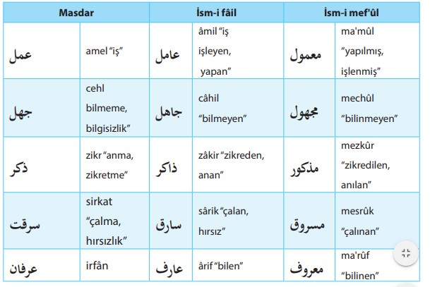 "Arapçada masdarlar, türedikleri fiilerin teklik 3. şahıstaki çekimlerinde zâid