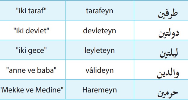 Aşağıdakilerden hangisi "Mekke ve Medine" anlamına gelen tesniye yapıdaki kelimedir?