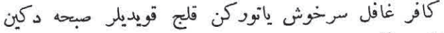 Kâfir gaffil surhâş yaturken kılıç koydılar sabâha denk |