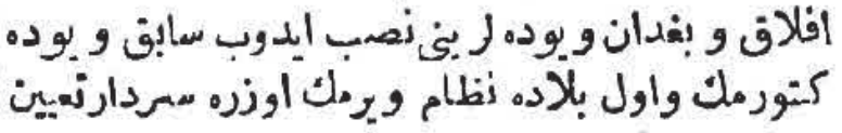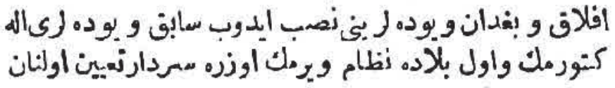 "Eflak ve Boğdan voyvodalarını nasb idüp sâbık voyvodaları ele getürmek ve ol bilâda nizâm virmek üzre serdâr ta‘yîn olunan..." cümlesinin Osmanlı Türkçesi: