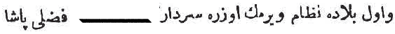 Ve ol bilâda nizam virmek üzre serdâr tayin olunan Fazlı Paşa...