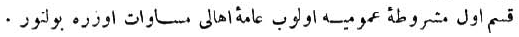 Kısm-ı evvel, meşrûta-i umûmiyye olup âmme-i ahâlî müsâvât üzre bulunur. |