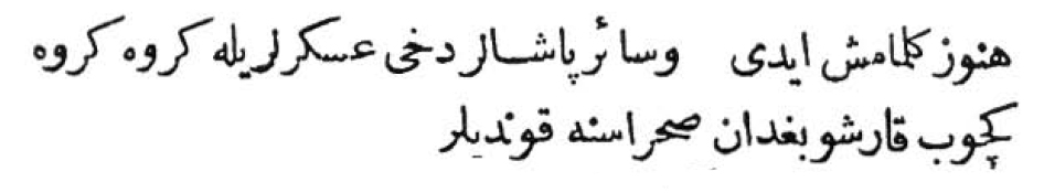 ... henüz gelmemiş idi. Vesâ’ir paşalar dahi askerleriyle gürûh gürûh geçüp karşu Boğazdan sahrâsına kondular. |