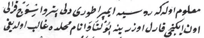 Latinizesi "Ma‘lûm ola ki Rusya İmparatoru Deli Petro, İsveç Kralı On İkinci Karl üzerine Poltava nâm mahalde gâlib olduğu..." olan cümlenin günümüz Türkçe çevirisi: "Bilinmeli ki Rusya İmparatoru Deli Petro'nun İsveç Kralı On İkinci Karl’a karşı Poltava isimli yerde mağlup olduğu" cümlesidir.