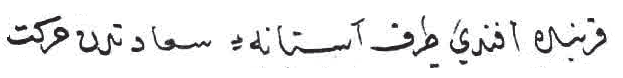 "Feyzullah Efendi taraf-ı Âsitâne-i sa'âdet'den hareket" ifadelerinin eski harflerle yazılışı,