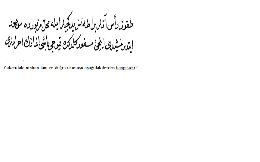 Metnin doğru okunuşu E seçeneğinde verildiği gibi “Bundan akdemce taraf-ı Hazret-i Cihân-dârîlerinden Rusya İmpetoruna irsâl buyrulan nâme-i humâyûn” şeklindedir.