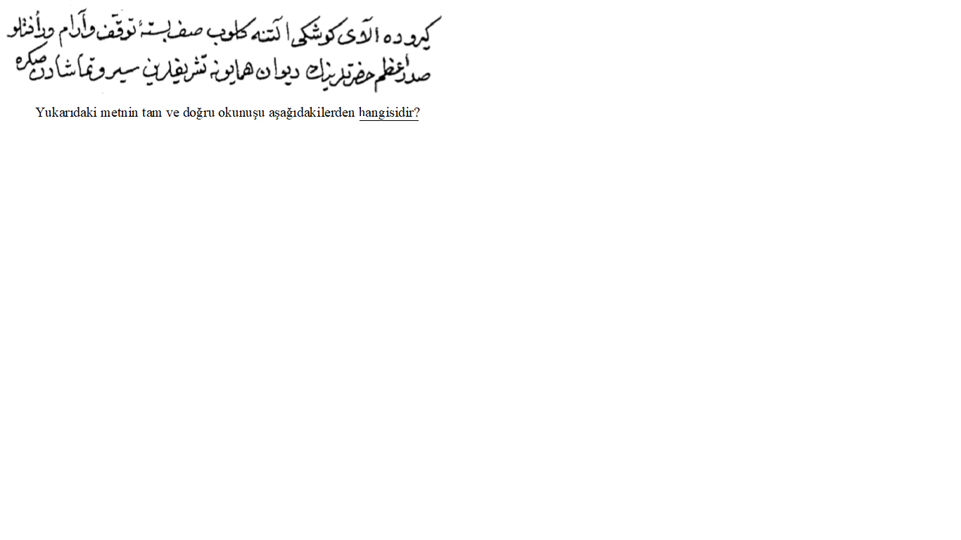 Yukarıdaki Osmanlı Türkçesi ile yazılmış metnin aşağıdakilerden hangisinde günümüz harflerine doğru olarak aktarılmıştır?