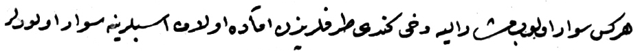 Metnin günümüz harflerine aktarılmış hali şu şekildedir: "Herkes süvâr olup müşârün-ileyh dahi kendi taraflarından âmâde olan esblerine süvâr olurlar"