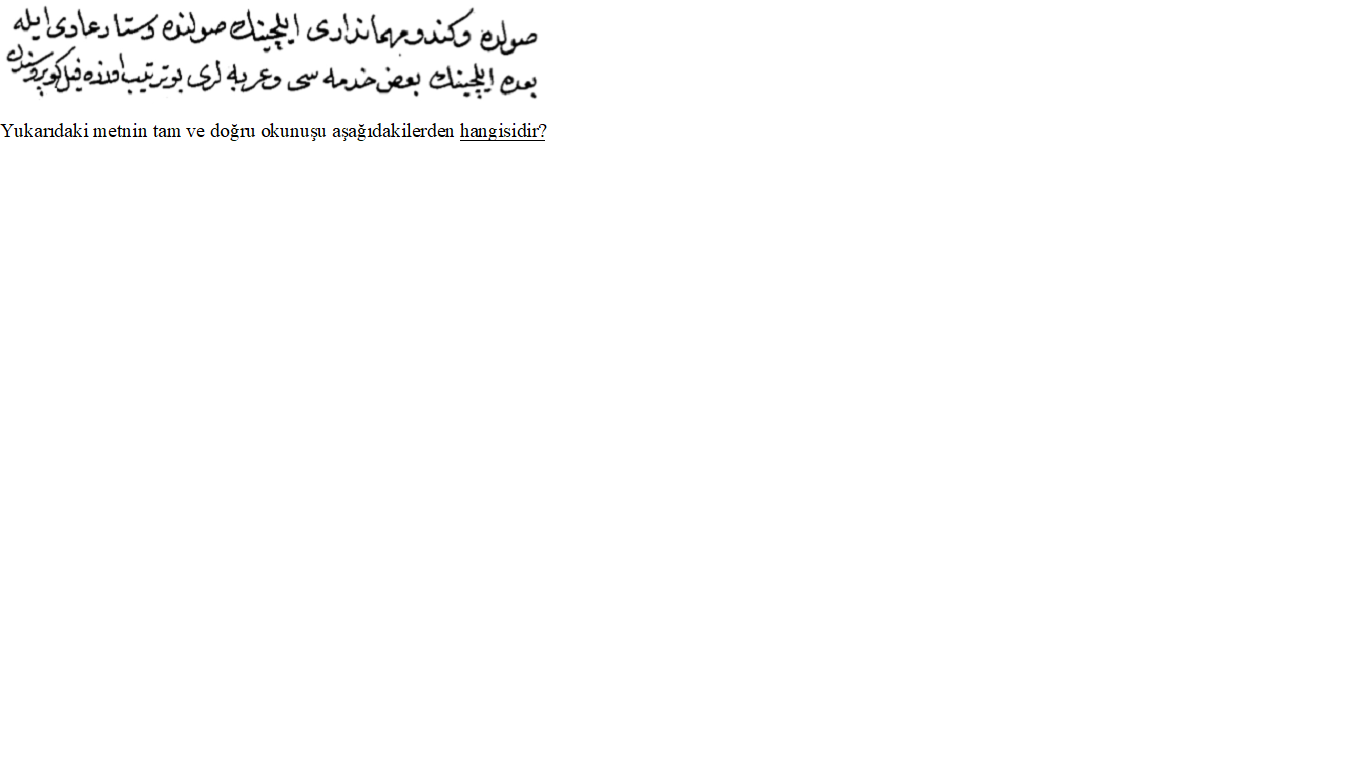 Yukarıdaki Osmanlı Türkçesi ile yazılmış olan metnin günümüz Türkçesi karşılığı aşağıdakilerden hangisinde doğru olarak verilmiştir?