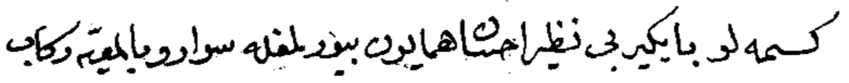 kesmelü baygîr-i bî-nazîr ihsân-ı humâyûn bulmağla süvâr ve bi’l-ma‛iyye rikâb |