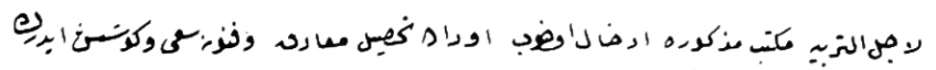 lâ-ecelü’t-terbiye mekteb-i mezkûra idhâl olunup oradan tahsil-i ma ‘ârif ve fünûna sa‘y ve gûşiş ederek |