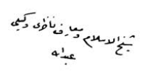 Şeyhülislâm ve Maarif Nâzırı Vekîli Abdullah" şeklindedir.