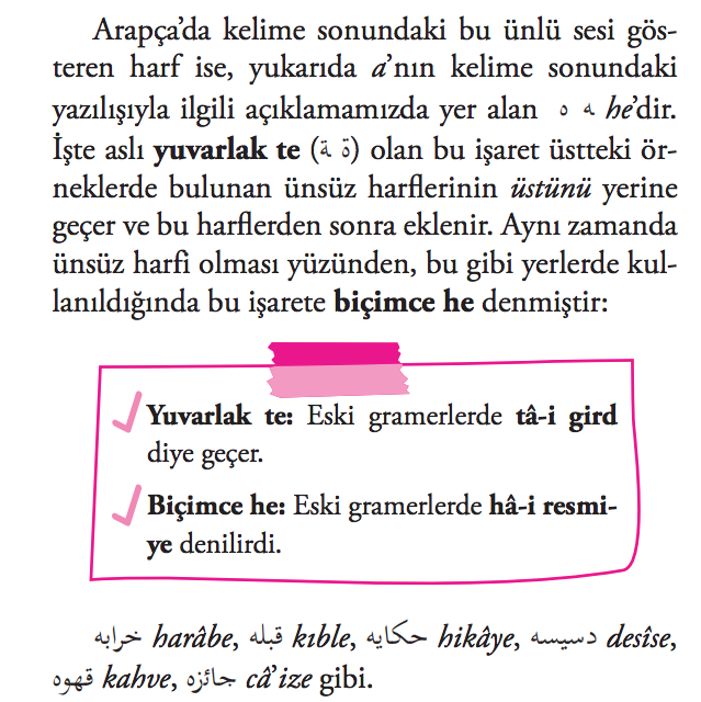 ا elif, د dal, ذ zel, ر rı, ز ze,be, پ pe, ت te,