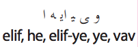b. ince ünsüz harfleri: ب be, ت te, ث se, ج cim, ف ,şın ش ,sin س ,ze ز ,rı ر ,zel ذ ,dal د ,çim چ fe, ك kef, گ gef, ل lam, م mim, ن nun, و vav, .ye ی ,he ه