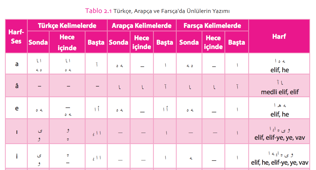 Arapça ve Farsçadan alınan bütün kelimelerin söylenişlerindeki değişiklikler yazılışlarına yansıtılmıştır.