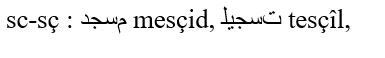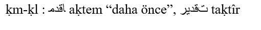 Konuşma dili Arapça kelimelerde iç seste karşılaşan çift ünsüzler arasında da Türkçenin benzeşme kanununu işletmiştir. Türkçenin iki ana kanunundan biri olan bu ünsüz benzeşmesine ḳm-ḳl : اقدم aḳtem “daha önce”, تقدير takdir kelimeleri örnek olarak verilemez.