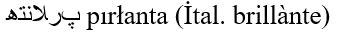 Alıntı kelimenin başında çift ünsüz varsa kelimenin kendi ünlüsünün yeri değiştirilip iki ünsüz arasında kullanılmıştır: ????? pırnal (< Grek. prinali) gibi.