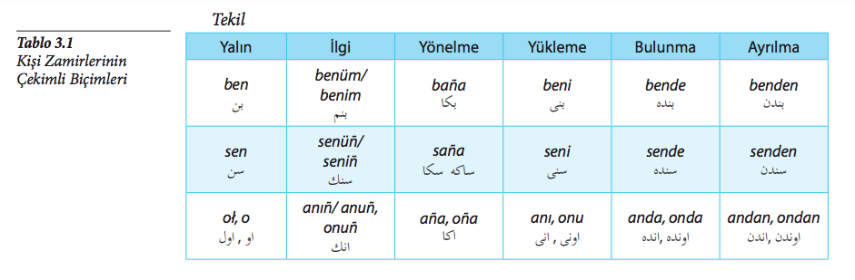 "Ben" zamirinin Osmanlı Türkçesi'ndeki karşılığı aşağıdakilerden hangisidir?