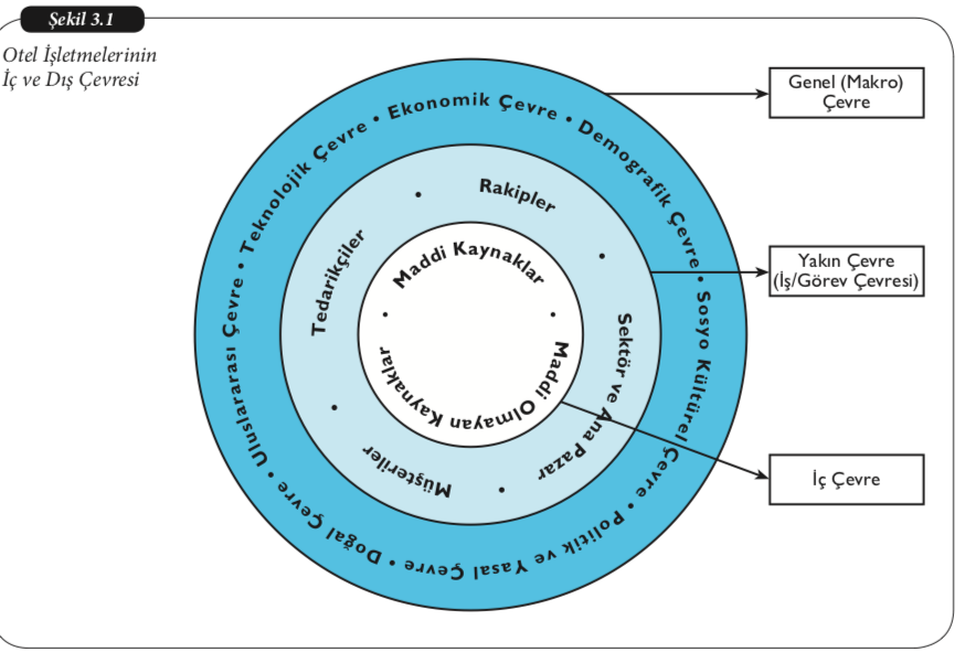 Otel işletmelerinin çevresi, iç çevre, yakın çevre ve genel çevre olarak üçe ayırılabilir. Hangisi iç çevre unsurlarından biridir?