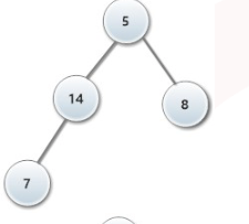 A seçeneği, D seçeneği ve E seçeneği sol tarafı dolu olmayan ama sağ tarafı dolu ağaçtır. C seçeneğinde ise her kök düğümü alt düğümlerden küçük/büyük özelliği göstermiyor.
