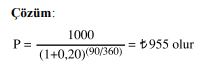 X işletmesi nominal değeri 1.000 tl olan 90 gün vadeli ve yıllık %20 faizli varlığa dayalı menkul kıymet ihraç etmek istemektedir. Buna göre menkul kıymetin satış fiyatı nedir? (1 yıl= 360 gün)