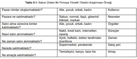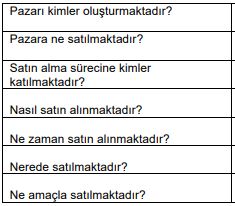 Örgüt - Nesne - Kullanıcı - Zaman - Süreç - Satış Yeri - Amaç |