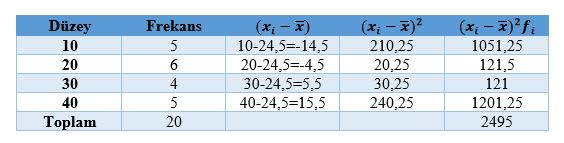 Değişkenlik ölçüleri arasında en sık kullanılanlar varyans ve standart sapma'dır. Varyans