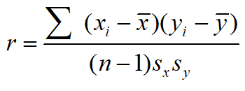 x ve y değişkenleri arasındaki Pearson korelasyon katsayısı, x’in standart sapması sx ve y’nin standart sapması sy olmak üzere,