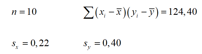 x ve y değişkenlerine ilişkin yukarıda verilen hesaplamalara göre Pearson korelasyon katsayısı kaçtır?