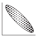 Doğrusal korelasyon olmadığı zaman noktalar kadran üzerinde öylesine dağılmış bir görüntü verir (E seçeneği). Korelasyon varsa bu ya yukarı doğru tırmanan bir şekle girer (pozitif korelasyon, biri arttıkça diğeri de artıyor) ya da aşağı doğru düşen bir şekle girer (negatif korelasyon, biri arttıkça diğeri azalıyor). Artsa da azalsa da saçılan noktalar bir sanal çizgi etrafında ne kadar güzel hizaya dizilmişse başka bir deyişle elipsin karnı ne kadar daralıp çizgi şekline yaklaşmışsa korelasyon katsayısı (r) o kadar 1’e doğru yaklaşmış yani korelasyon güçlenmiş demektir. Doğru yanıt E seçeneğidir.